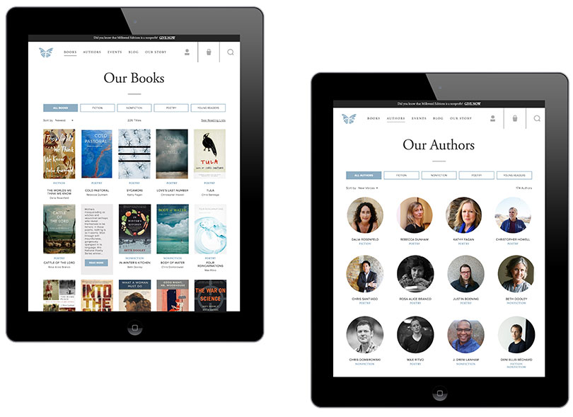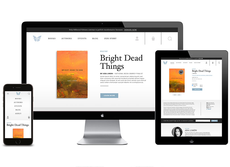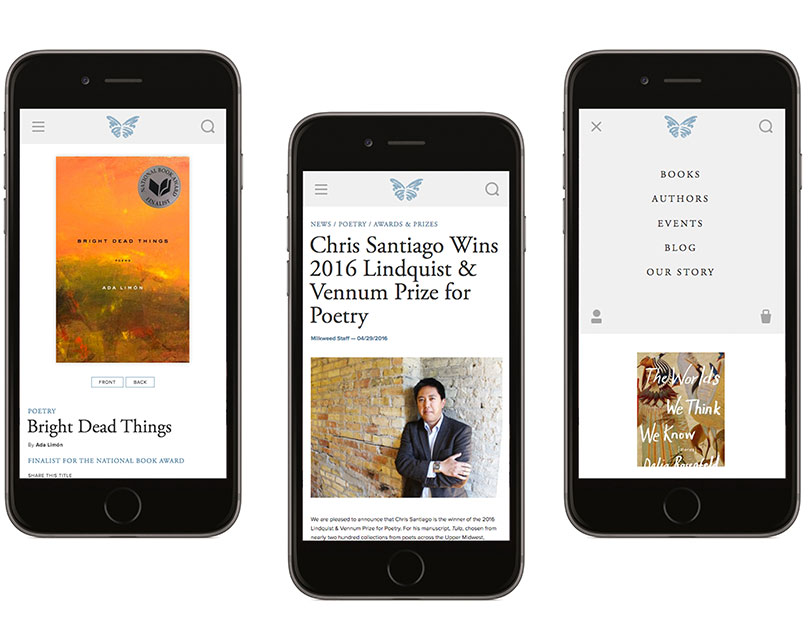 We started by building their core strategy and positioning, rallying their internal team around a clear mission. Then we created a design identity, voice and tone and content strategy that pulled from the best of their heritage while also aiming to be modern and timeless. All of this foundational work came to life in the creation of a new website for milkweed.org. The new site is completely responsive, built to look just as elegant on a cell phone as it does on desktop.